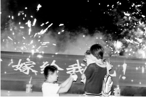 本报讯 近日,我市一名男子为向女友求婚,举办了一场华丽的求婚仪式——专场焰火晚会。当晚的情景被网友发布到龙都论坛,随后在微博和本地网站中蔓延,受到网友热捧。昨日,记者联系到当事人的两位朋友,请他们向记者还原当时的浪漫一幕。