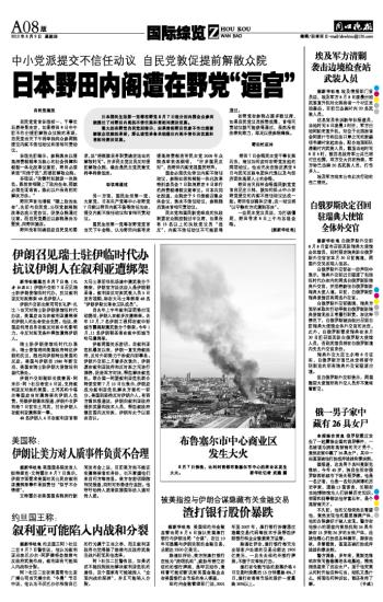 日本野田内阁遭在野党“逼宫”