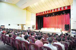 当日上午,小记者及其家长早早来到人民会堂,人民会堂内早已座无虚席。8时40分,高考尖子励志报告会正式开始,周口晚报总编辑顾玉杰首先致词。他说,每当高考来临时,不仅高考考生的压力增大,就连家长们也会焦虑不堪。这说明高考备考不仅要注重知识的复习,更要注重心态的调整。此次邀请这些考入名学的学子,就是向学生介绍如何在考试中发挥最佳水平、如何做好考前的最后冲刺、如何才能找到适合自己的有效学习方法等问题。他们刻苦努力,对未来有着明确的目标和方向,并为之付出不懈努力。他们好学、刻苦、坚强、自立的精神,以及发生在他们身上的励志故事,是教育孩子自立自强的最好教材。而此次采用这种面对面的交流方式就是让孩子明白对于理想应该执著追求,不畏艰难困苦,一往无前,矢志不移。 随后,淮阳中学校长郑现清发表讲话。