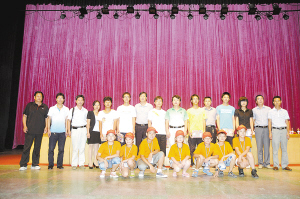 本报总编辑顾玉杰(左七)、副总编辑田维国(左一)与高考尖子励志报告团成员及部分小记者合影留念。
