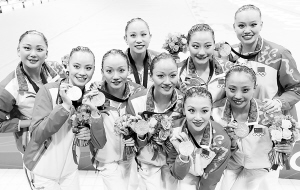 这次在伦敦奥运会,中国队在集体项目凭借一曲《蝴蝶》,力压老对手西班牙队,收获了一枚银牌,而双人项目也有突破,黄雪辰/刘鸥在7日的自由自选决赛中以充满中国特色的《龙》赢得了一枚铜牌,这是花游双人的奥运首枚奖牌。