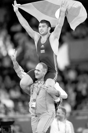 当地时间8月11日,在伦敦奥运会男子自由式摔跤84公斤级决赛中,阿塞拜疆选手沙里福夫获得冠军。 新华社记者 任正来 摄