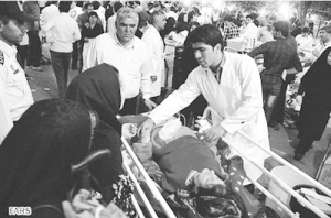 伊朗卫生部长马尔齐·瓦希德·达斯特杰尔迪告诉伊朗伊斯兰共和国通讯社记者,政府已经向受灾严重的地区调派48辆救护车,调送500个血袋。