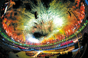 伦敦时间8月12日,第30届夏季奥林匹克运动会闭幕式在伦敦奥林匹克体育场举行。这是闭幕式上的焰火表演。新华社发