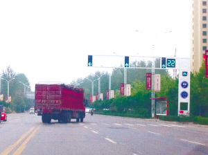 图:在周口大道和文体路交叉口,驾驶人由北向南行驶时,在左转道上可以看到左转和直行指示灯同时亮绿灯。