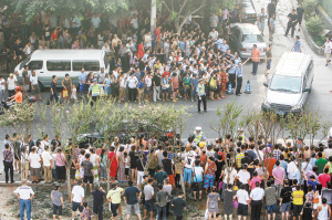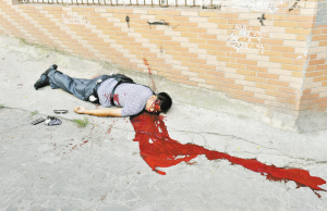 小图为昨晨6时50分,周克华在重庆沙坪坝区童家桥被击毙。大图为尸体被警方运离现场。新华社发
