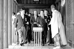 8月15日,日本国土交通大臣羽田雄一郎等政要参拜靖国神社。