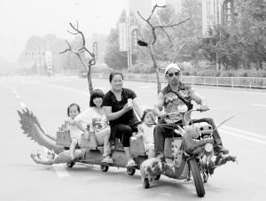 8月15日,东新区文昌办事处康店社区的63岁老人康明智花了5个月时间制作的电动“龙车”亮相街头,吸引了不少路人驻足观看。不过,交警部门认为,该车属非机动车,禁止在机动车道上行驶。
