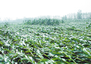 据悉,这场暴风雨还造成该县县城部分区域停电,一些商店遭积水浸泡。19日早上,记者接到该县秋渠乡村民反映,大片高秆秋作物受狂风吹袭倒地(如图),农业专家表示会造成一定程度的减产。