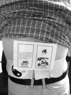 “其中一个‘武僧’扎马步‘运气’,在我的后腰部位装模作样地进行‘治疗’。我当时感觉热乎乎,以为真是发功的结果。这时,这个‘武僧’接连把3张膏药贴在了我的后腰部位。”华先生对记者说,“贴完后他们以向少林寺募捐积德的名义向我索要90元/张的费用。经过讨价还价,我付给他们200元钱。他们还拿出‘收据’向我展示其他人缴纳的费用,有规划局的人,还有建委的人,他们缴纳的都不止200元钱。”