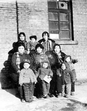 1975年冬,爱人和结伴探亲的同乡“军嫂”照的合影。前右一为爱人和两个孩子。