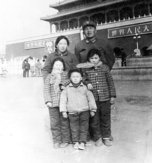 1982年,爱人随军搬家时路过北京,全家在天安门合影。