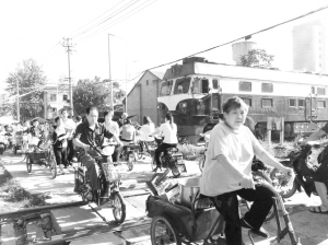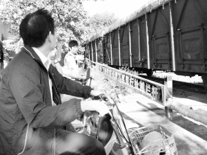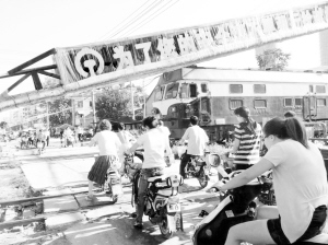 当日上午8时10分,市区五一路警报声骤响,位于铁道口的护栏缓缓落下,大部分行人停下了前行的脚步。而有的行人却不顾危险,掀起护栏强行通过,而个别强行通过失败的行人,偏要站在护栏内推车等待,不少人为其安全“捏把汗”。8时15分,面对急着通行的人流,本来准备由东往西行驶的火车,只得暂时停了下来,无奈地“看着”行人过完后,才向前行驶。
