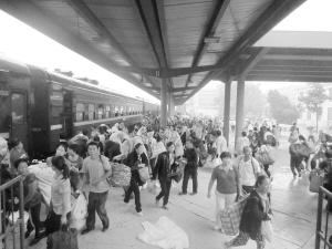 据了解,武汉铁路局确定于8月26日、8月28日、9月4日开行3趟周口至石河子、奎屯赴疆摘棉专列后,周口火车站工作人员深入我市各县乡与当地劳动部门积极联系,做到早安排、早部署,成立“三品”检查、候车秩序维持、上车引导、重点旅客服务等5个组,引导摘棉工有序进站乘车(如图),为他们提供一个安全、有序的乘车环境。