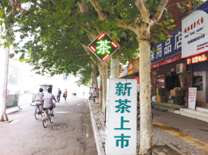 近日,记者在市区八一中路看到,某家茶行的广告牌用铁丝挂在树上,给过往的行人带来安全隐患。