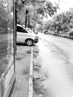 记者在现场看到,火车站广场前人行道上的停车位停着一些提供租车服务的车辆,这些停放的车辆大都越过道牙或多或少占据部分非机动车道。另外,为了方便将车辆停在人行道上,不知是谁在这个路段的道牙上用水泥修了不少缓坡,记者粗略统计了一下,50余米的道牙修了30多个缓坡。而这些“探头”的车辆和缓坡恰恰“侵犯”了有关部门设立在非机动车道上的停车位。