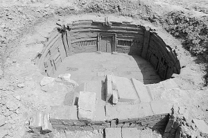 本报讯 近日,周口市文物考古管理所在项城市某建筑工地进行文物勘探时,发现6座古代墓葬,并对其中两座宋代砖室墓进行了抢救性清理发掘(下图),出土了古钱币大泉五十、仿座椅生活器皿、花样砖等珍贵文物。