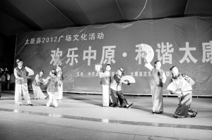 日前,太康县第36场广场文化活动在该县人民广场如期举行,该活动以“欢乐中原·和谐太康”为主题,由中共太康县委宣传部、太康县文学艺术界联合会主办。当日,河南坠子、道情小戏、琴书、渔鼓道情等轮番上演,给群众献上了一道文化大餐。