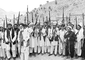 8月27日,阿富汗民众高举武器,誓言打击塔利班武装分子,捍卫自己的土地。