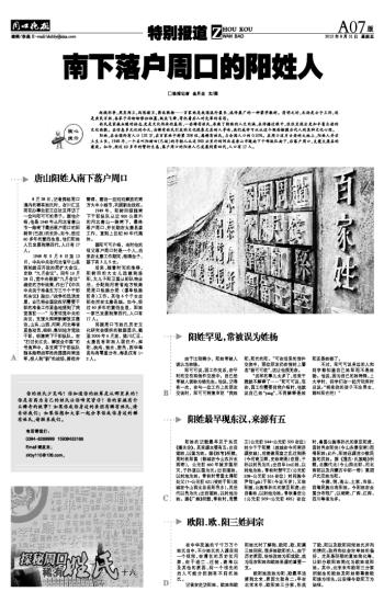 南下落户周口的阳姓人