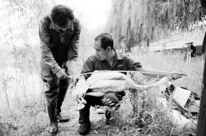 今年4月21日,沈阳理工大学生态环境研究室主任周海翔和一些爱鸟护鸟志愿者发现在康平卧龙湖自然保护区附近有一只白鹤被盗猎者放置的鸟夹夹伤右脚趾,与鹤群走散。随后,他们将白鹤带回沈阳为它做了截趾手术。右脚两只脚趾被截除后,白鹤被临时安置在沈阳二环外一处人工湖边,周海翔和志愿者们用铁丝围栏为白鹤搭起一处小“家”,让它在水滨的环境中休养,重新亲近自然。
