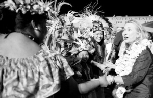 当美国国务卿希拉里·克林顿的专机于8月30日抵达南太平洋岛国之一的库克群岛时,负责接机的是库克群岛总理亨利·普那。次日,一身橙色套装的希拉里出席了南太平洋岛国论坛的一系列会议。希拉里在会上弱化了外界对美中两国在亚太地区“势不两立”的预测,宣称“亚太之大容得下美中两国”。她还强调美国在亚太地区频繁活动并非针对特定国家。