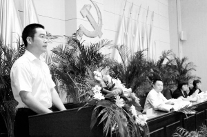 当日下午,川汇区政府礼堂座无虚席,400余名干部群众怀着对英雄的敬仰,早早地坐在座位上等候报告团成员的到来。15时许,在热烈的掌声中,报告团成员一一上场,随即,5名系着红领巾的少先队员上台向他们献花。淮阳县创先争优办公室成员、淮阳县王店乡干部、彭秀英的女儿、彭秀英的邻居和本报记者杜欣(图一)等5名报告团成员用生动朴实的语言,从不同角度、不同侧面介绍了彭秀英的先进事迹。精彩的演讲、感人的故事,引起台上台下强烈的共鸣。