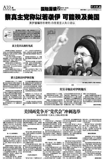 黎真主党称以若袭伊 可能殃及美国