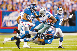 本报综合消息 北京时间9月6日,2012-13赛季NFL的揭幕战在纽约大都会体育场掀开战幕,超级碗卫冕冠军纽约巨人坐镇主场迎战同在国联东区的死敌——达拉斯牛仔队,经过近三个半小时的激烈争夺,巨人意外地以17∶24负于对手,无缘赛季开门红。