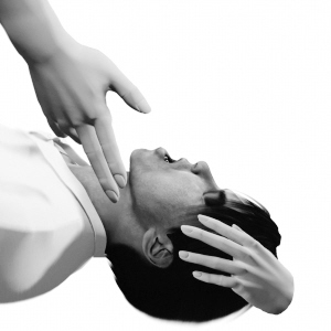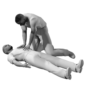 按压时,施救人员应双膝跪在病人右侧,使腕、肘、肩关节呈一条直线,保证每次按压的方向垂直于胸部。国际心肺复苏指南指出,有效的心脏按压频率至少要达到100次/分钟。下压的力量应来源于双手的掌根部,按压过程中,掌根不要离开按压部位。按压力度的把握以胸廓下压至少4至5厘米为准,如果无法判定是否达到有效的下压力度,可以采取一人按压的同时,另一人以食指和中指触摸病人的颈动脉,按压过程中如能摸到颈动脉搏动,说明按压是有效的。摸不到颈动脉搏动,按压就是无效的。