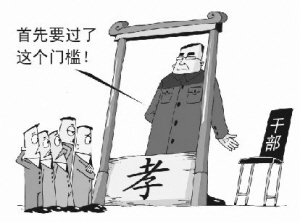 作为公共群体的政府机关事业单位人员,理应在道德上作出表率,这是普遍共持的观点。有些地方则率先将这作为了事业单位人员的考核标准。2011年11月,山东省莱州住建局给下辖各机关、事业单位的500多名职工发“孝德支票”,并定时抽检,规定“对于不敬老人、不爱父母的人员,坚决不予推选和提拔”。