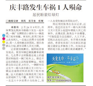 图为本报2月27日刊发的一则关于庆丰东路与人和路交叉口发生车祸的消息
