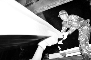 9月8日,武警贵州总队官兵在搬运救灾物资。