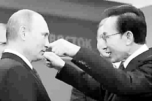这是李明博8月10日登临独岛(日本称“竹岛”)视察以来,日韩两国首脑首次见面。