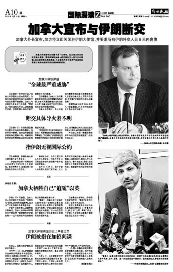加拿大宣布与伊朗断交