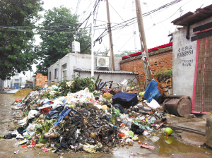 市环卫处负责统一调派垃圾清运车的一位队长告诉记者,以前胡同里的垃圾比较少,使用铁锨和小型斗车就可以全部运走。可最近一段时间,一些住户把大量建筑垃圾也倒在这里,导致垃圾越来越多。“我们好几次动用了大型铲车,可胡同本来就窄,加上路两边又停满了私家车,铲车每次都进不去。我们已经跟附近居民打过招呼,让他们通知车主先不要把车停在路两边。不出意外的话,我们很快就会把垃圾全部清走。”