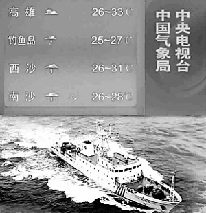 9月11日起,中央电视台在中午1时57分播发钓鱼岛附近海域海洋环境预报,在晚上7时30分黄金时段“新闻联播”后播发钓鱼岛及周边海域天气预报。气象和海洋专家认为,这是中国宣布钓鱼岛领海基线后宣示主权的又一举动,同时也是履行职责的表现。