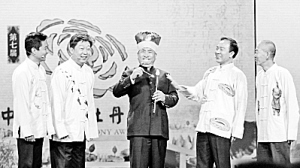 当晚的现场,姜昆和戴志诚、赵津生、周炜、郑健联袂带来群口相声《如此开发》。这也是姜昆冲刺2013年春晚的作品,先拿到牡丹奖的舞台上“试水”。在作品中,姜昆化身“文化名人”,讽刺地方政府拿名人说事儿的桥段层出不穷,笑料十足。姜昆表示,如今娱乐文化泛滥,“一提创意产业就一窝蜂上动漫,很多地方对文化的认识还很肤浅,结果是政府买单老百姓吃亏。”