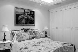 夫妇的卧室墙面可选择温馨旖旎风格的装饰画或者摄影作品,例如静物、风景都是不错的选择;镶嵌画、丙烯画、玻璃画等色彩鲜艳,能有力表现热烈感情,适宜新婚家庭;儿童房则可以选择充满童趣和夸张情绪的卡通画面,无论是线条简单还是丰富细腻,都能表现出天真烂漫;老人房的卧室墙面装饰,可以选择宁静致远的书法、意境悠远的国画或者挂毯画、竹编画、绳结画等,充满艺术感。