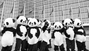 9月18日,10余名装扮成“大熊猫”模样的人们出现在比利时首都布鲁塞尔欧盟总部大楼前,号召当地民众积极争当“成都熊猫守护使者”。