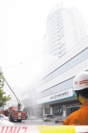 昨天上午,周口市区七一路旁一座19层高的大楼突然“起火”,火势迅速蔓延,闻讯赶到的消防官兵及时展开灭火,两台“举高喷射消防车”对着高处的“起火点”喷水,不久大火被扑灭。据介绍,这是一场针对高层建筑的消防演练,通过演练全面检验了周口消防部队应对高层建筑火灾实战能力。