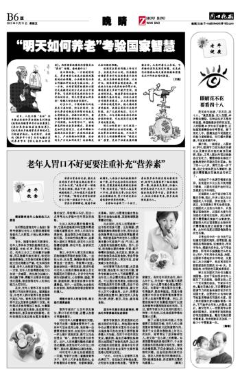营养专家解释说,随着年龄的增长,人体各方面的机能都开始下滑,其中也包括消化功能的衰退,其最直接的表现就是食欲下降、吸收变差。“老年人容易胃口不好,其实很正常;但这同时也在提醒我们,胃口不好更要注意饮食和营养的均衡。”