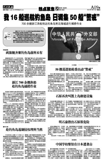 我16船巡航钓鱼岛 日调集50船“警戒”