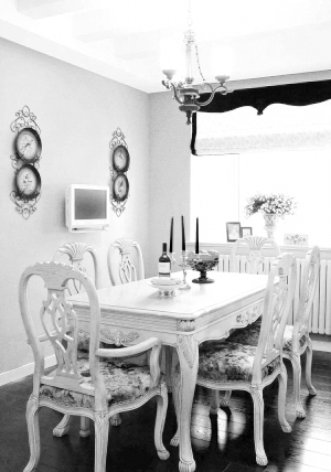 淡绿色的墙面配上欧式仿古家具,年轻主人的阅历和品位一览无余。餐厅选用白色简欧家具。