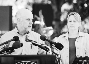 图为 9月23日,在美国首都华盛顿,国家动物园园长丹尼斯·凯利(左)就大熊猫幼崽夭折举行记者会。