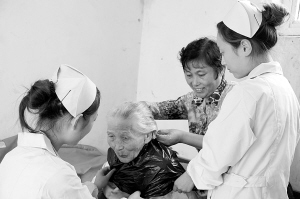 当日上午,志愿者们把带来的月饼、水果分发到福利院老人和孩子的手中后,便分头忙活起来:有的表演节目,有的给老人和孩子剪头发、剪指甲,有的喂孩子吃月饼……