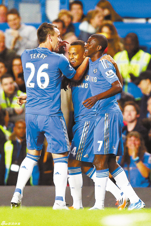 本报综合消息 北京时间9月26日凌晨02:45,2012/13赛季英格兰联赛杯第3轮一场焦点战在斯坦福桥球场展开争夺,切尔西主场6∶0大胜狼队,卡希尔和伯特兰前8分钟先后破门,马塔2传1射,托雷斯也传射建功,罗梅乌和莫塞斯均打入在切尔西的处子球。