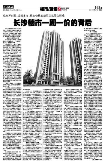 据湖南《潇湘晨报》报道,今年3月28日,嘉盛国际广场的销售均值达9500元/平方米;令人意外的是,楼盘一天销售了280套。4月1日,在长沙核心区的中山路与蔡锷路交界处的泉昇同福大厦精装修公寓,起价11000元/平方米。随后,在沿江风光带的华远、万达、复地等地产项目都已超过12000元/平方米。
