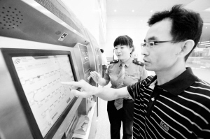 9月26日,一位顾客在郑州东站自动售票机上选购车票。