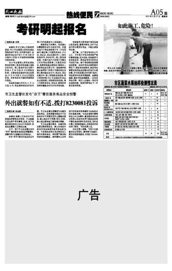 外出就餐如有不适,拨打8230081投诉